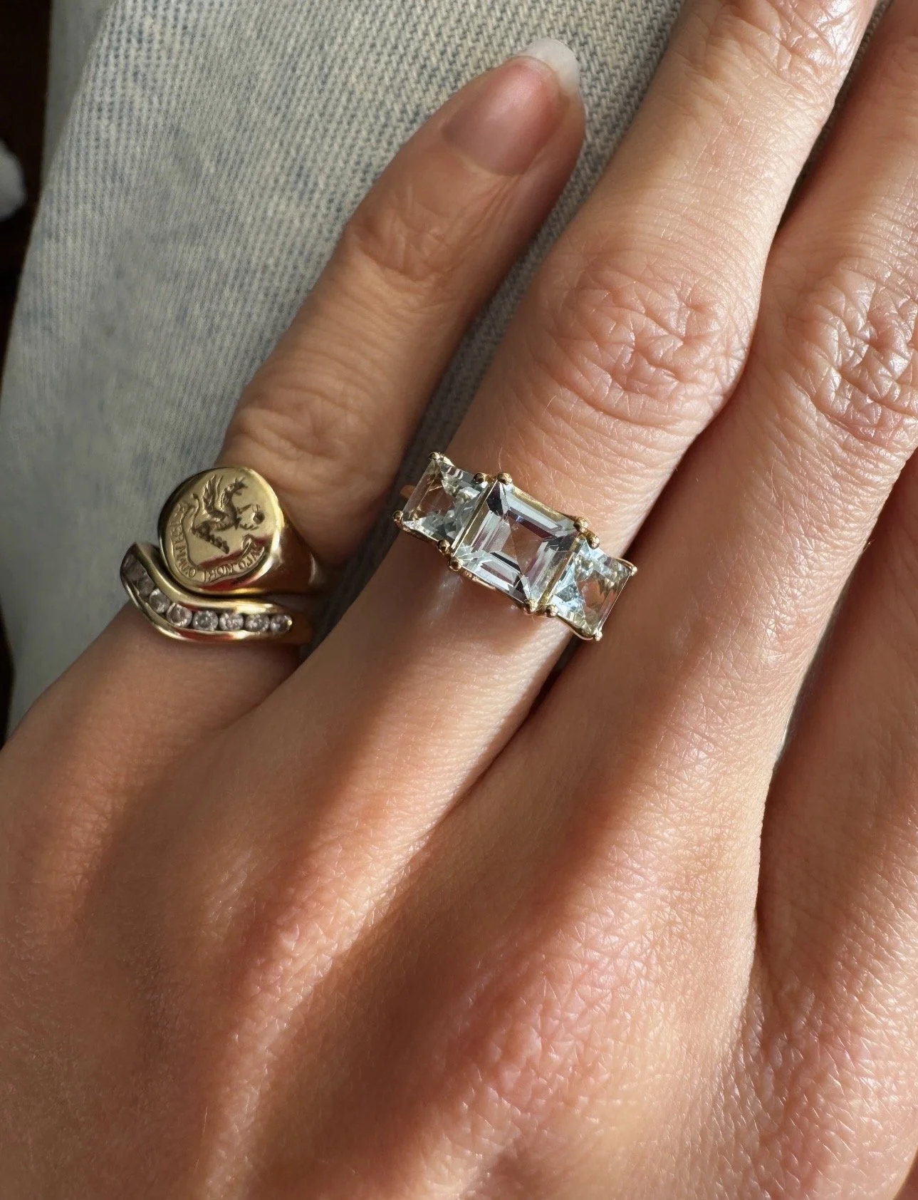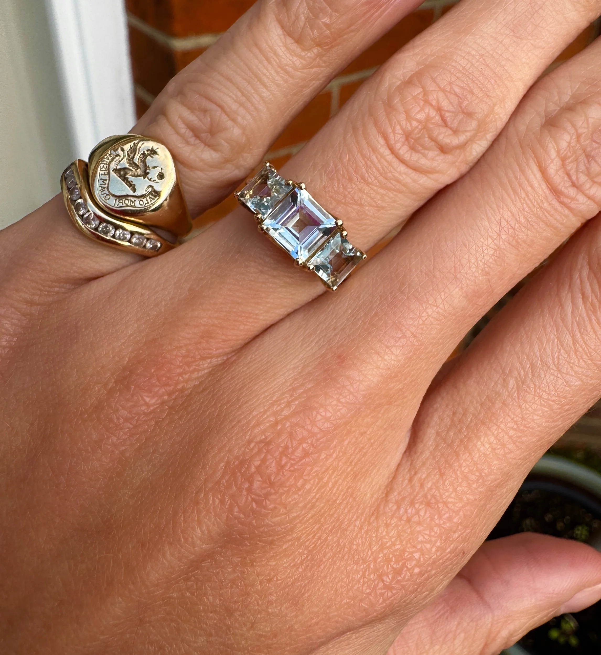 Shop › Step-Cut Aquamarine Ring Image 1 of 2 Image 2 of 2 Step-Cut Aquamarine Ring £335.00 Mounted in 9ct gold.Size J 1/2 - K (resizeable) Quantity: Add To Cart Added! Mounted in 9ct gold.Size J 1/2 - K (resizeable)